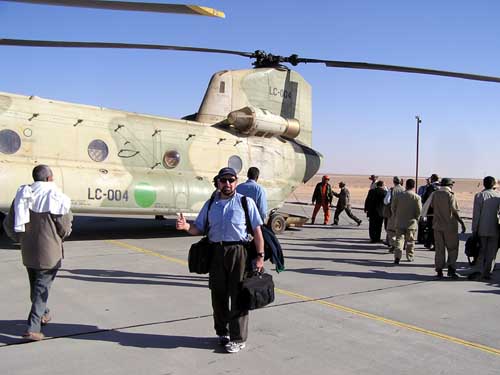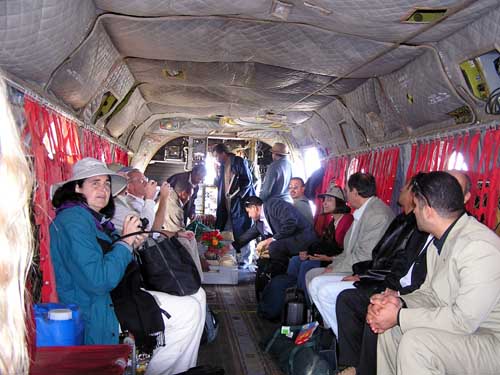 The group flying in the Chinook.